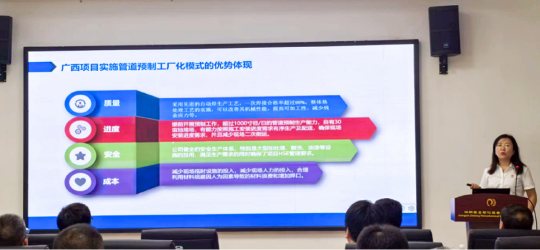 金童裝備公司常務副總兼總工程師韓越女士作“管道預制智能制造示范項目”的介紹及實施經驗分享。管道預制工廠化模式是工廠化預制的延伸,預制工廠化實施的主體是專業(yè)化的制造廠,質量控制體系與檢試驗設備、機械化作業(yè)與信息化管理等完全按照設備制造廠的模式實施,確保了產品質量的可控性和可追溯性;預制工廠的廠房、專業(yè)化設備、專業(yè)化人員等相對是穩(wěn)定并且是共享型的,為整個市場服務,不是針對某個項目,可有效的降低項目建設臨時設施的投入;多個項目同步實施可大比例的提高原材料利用率,同時庫存材料可解決項目建設及后續(xù)運行維護過程緊急用料的需求,有效的為管道系統(tǒng)長周期穩(wěn)定運行提供保障;標準化預制工作流程有利于加快施工進度、縮短建設周期、提高管道建設的效率和質量;管道預制工廠化模式是管道預制件的商品化供應的基礎,其獨有的專業(yè)性、穩(wěn)定性、經濟性、共享性,決定管道預制工廠化可以為管道項目建設提供最為優(yōu)良的解決方案。